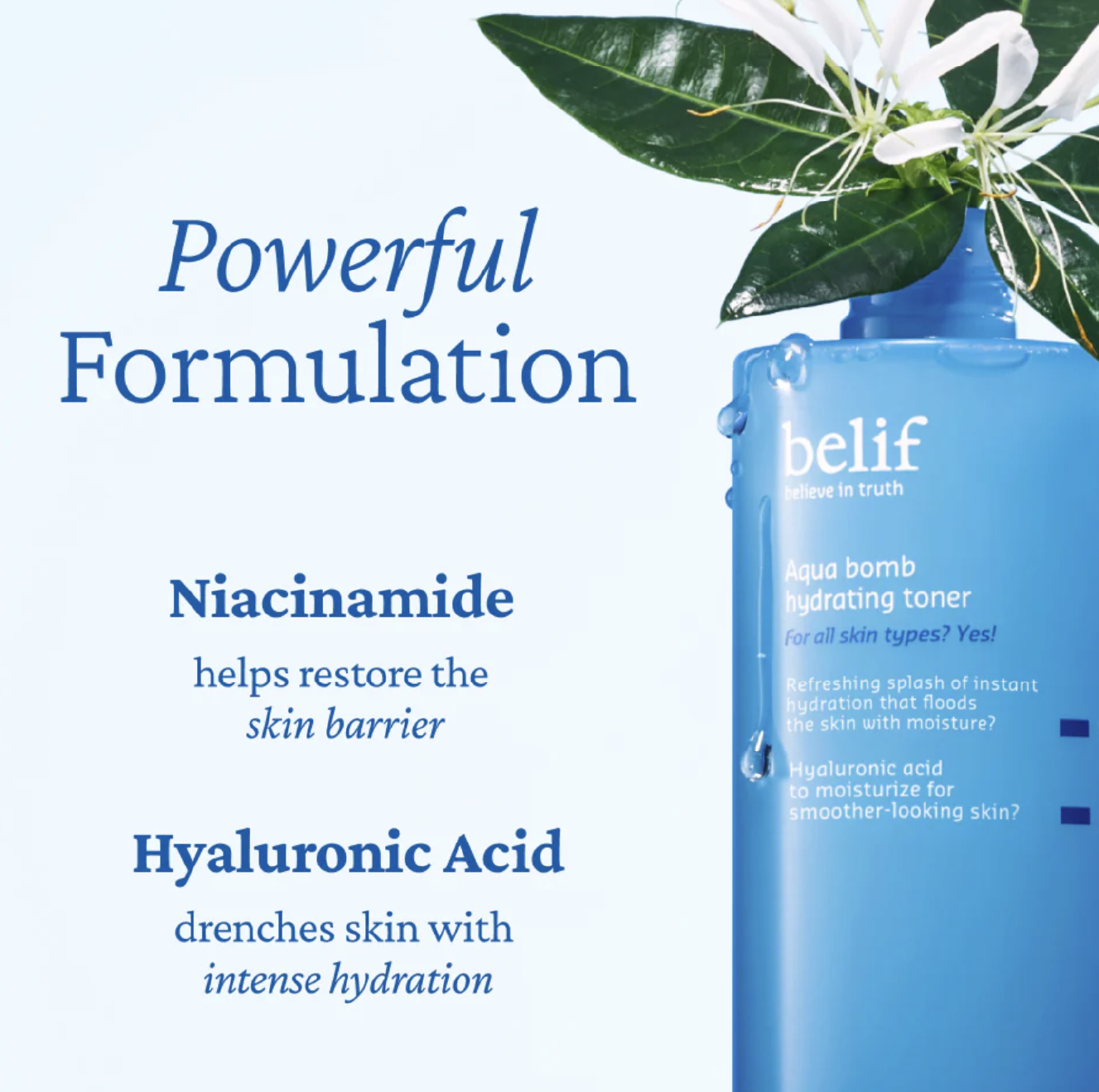 El Aqua Bomb Hydrating Toner es un tónico ultra liviano y refrescante, formulado con niacinamida (vitamina B3) y ácido hialurónico, que brinda una oleada instantánea de hidratación. Su textura acuosa se absorbe al instante, dejando la piel suave, equilibrada y lista para el resto de la rutina.