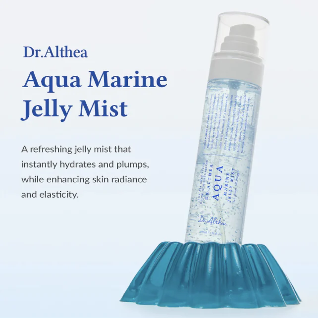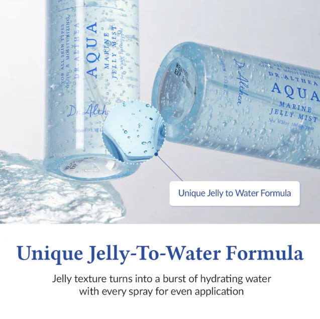 El Aqua Marine Jelly Mist es una bruma facial vegana de textura ligera y efecto refrescante, diseñada para hidratar profundamente y aportar un glow inmediato tipo glass skin.