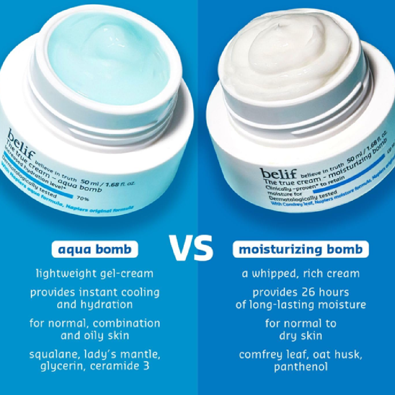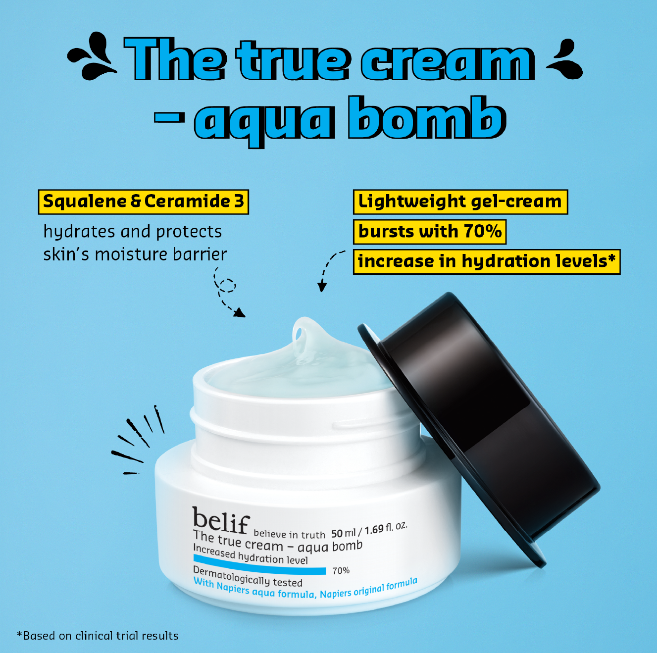 La The True Cream Aqua Bomb es una crema hidratante en gel ultra ligera, diseñada para brindar una hidratación profunda y refrescante. Su fórmula está potenciada con ácido hialurónico, niacinamida y escualano, que trabajan juntos para hidratar intensamente, mejorar la textura de la piel y reforzar su barrera natural.
